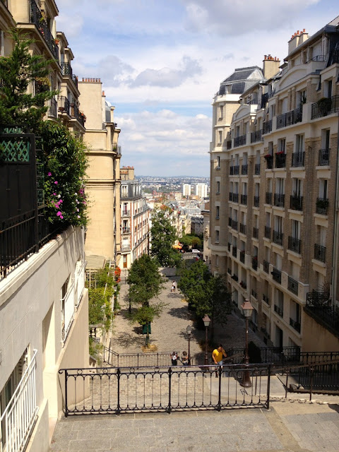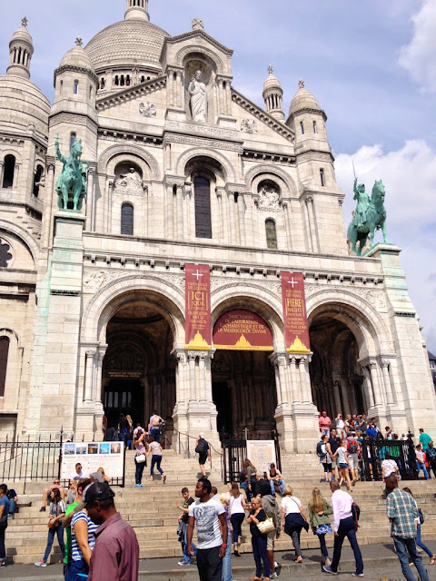 填飽肚子後,要爬一段天梯到Sacré Cœur 聖心堂,週邊有一個很熱鬧的徒步區,有很多畫家,除了現場畫風景,還有在幫人畫自畫像,也有很多人被畫,每當看到漂亮的布畫時就很想買個幾幅回家掛,但想到自已的行李只有馬鞍袋,裝回到家大概就皺到不成樣子,就又打退堂鼓。
