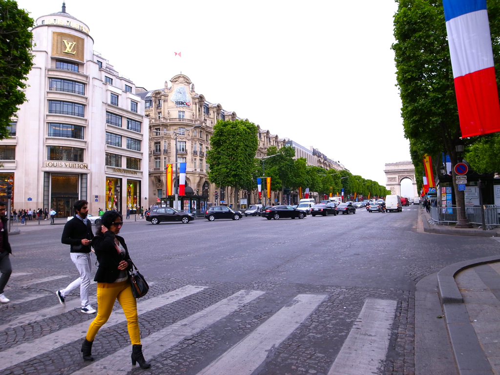 過了精品區時就會到達戴高樂廣場及凱旋門,那個看起來令人難以想像是在先進城市裡的恐怖的大圓環,總共有12條路的交匯處。