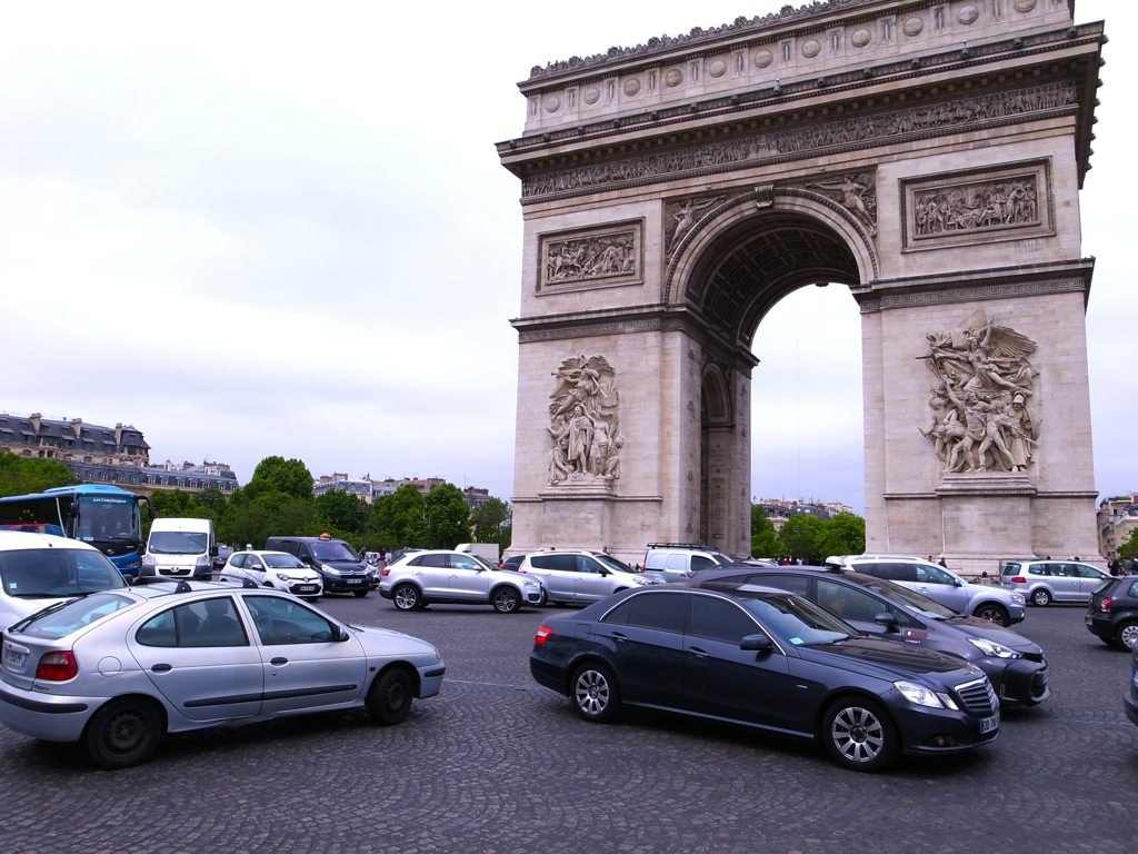 在香榭麗舍大道被無數塊石板舖成的石板路拖慢了行進速度,到了凱旋門還有無紅綠燈,但是有12個出口的凱旋門圓環做出把人嚇傻在那不知所措的攻勢(雖然是這樣, 但駕駛都好強啊,完全都能找到空隙切入切出)